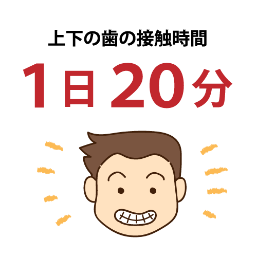 通常、上下の歯は食事中や会話中に接触しますが、上下の歯が接触する時間は1日20分程度が正常とされています。